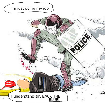 How is uncritical support for a armed group that mostly seem to support the tyranny of those who sign their pay-checks even when they are repressing human rights and freedoms might be a bad direction, this Australian (Prison Continent) national discusses.