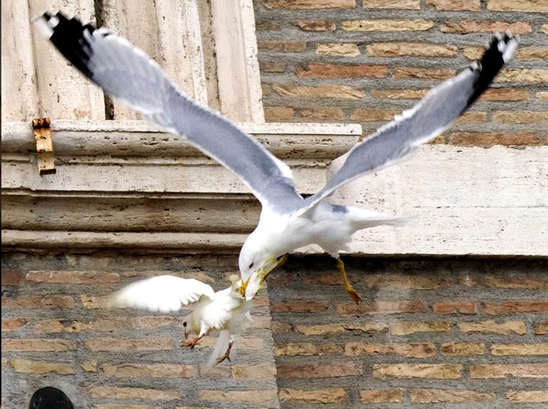 It may have been someone inspired by the Darkness of the images presented related to Pope Francis and children releasing Doves for Peace and them being attacked by other scavenging birds immediately – see images - as discussed towards end [Symbolic World, Jonathan Pageau] of Yesterday's Post, March 10th, 2022, Thursday Morning, 'Index Number 1452:', ..