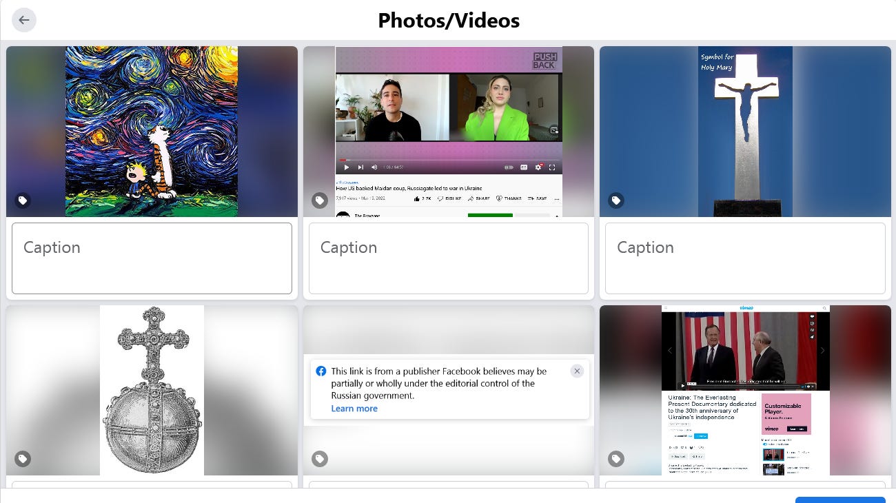 The only other thing I wanted to comment on was that Facebook puts a warning under some of my posts that says that They have decided that some links are connected to Russia .. yet they do not specify which. Sometimes it is clear, like RT (.com) but when not?