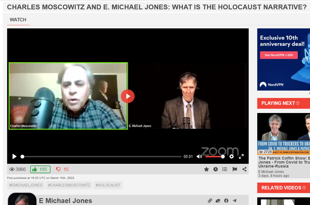 “Charles Moscowitz and E. Michael Jones: What is the Holocaust Narrative?”
