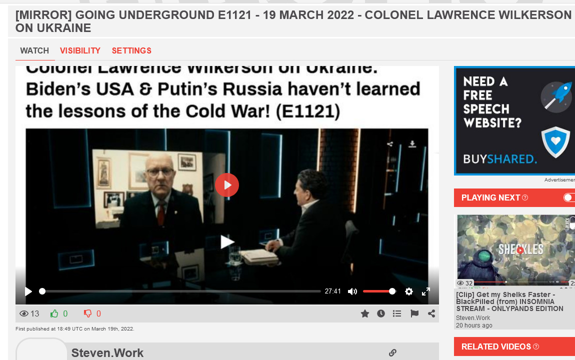 “[Mirror] Going Underground E1121 - 19 March 2022 - Colonel Lawrence Wilkerson on Ukraine”