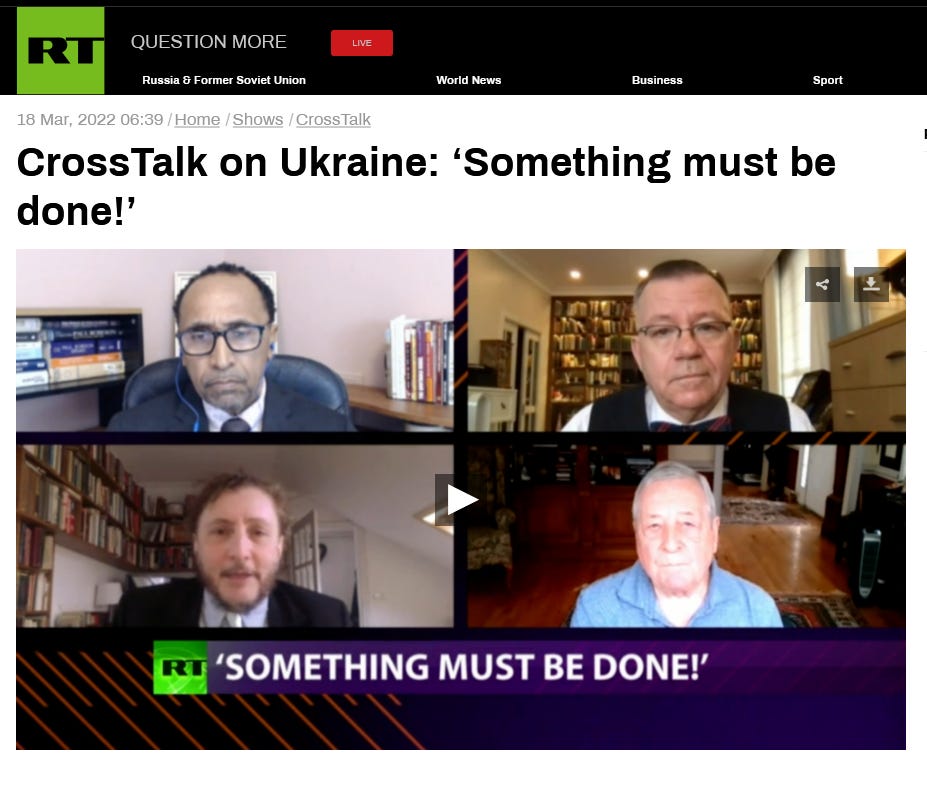 “[Mirror] CrossTalk on Ukraine: ‘Something must be done!’ 18 March 2022”