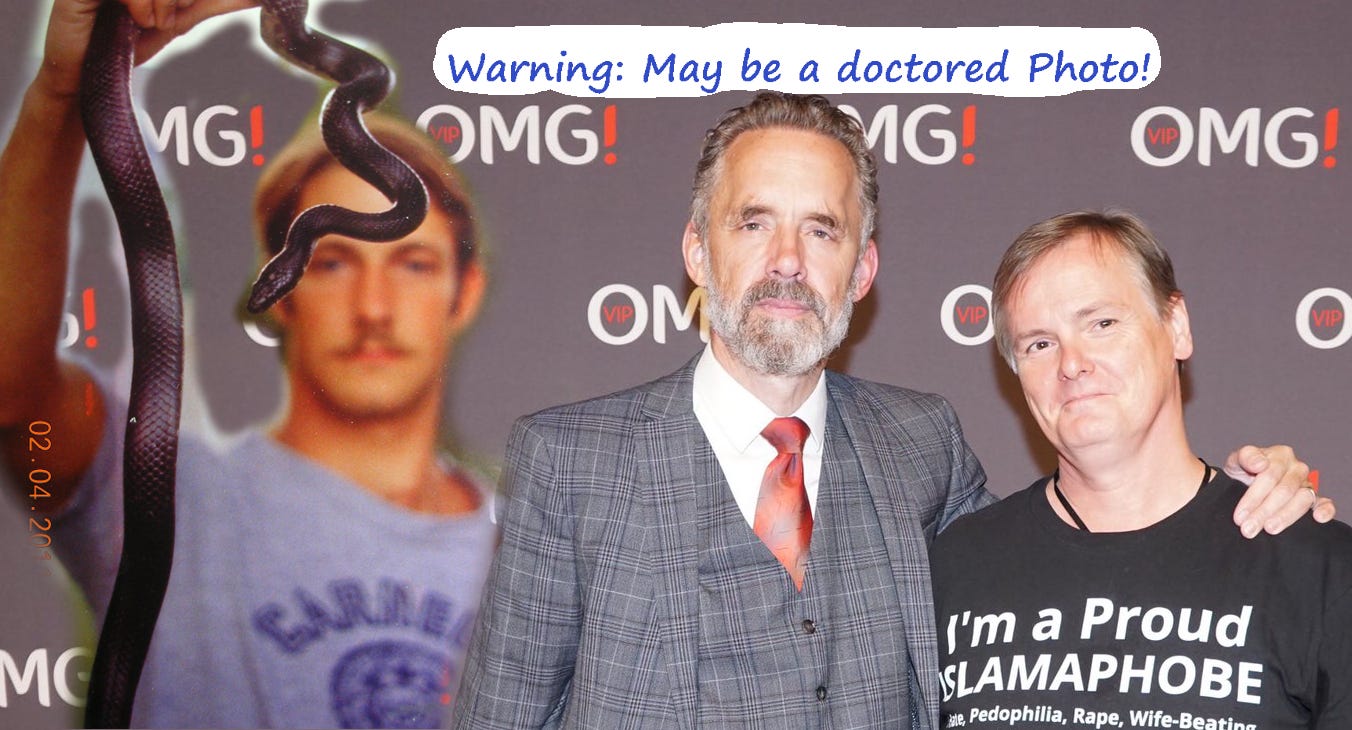 At the end of video - the wrap-up someone talks about Cambridge rejection of the previous scheduled lecture because a picture turned up of Peterson getting his picture taken beside a man that had a shirt the Witch-handlers used to upset the howling retarded cnt VagFeelie women (and the few Dog-males) up-in-arms, ..