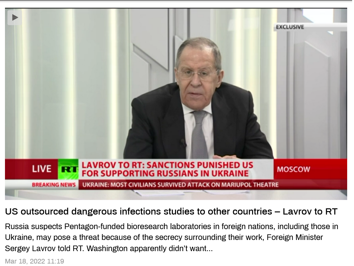 “US outsourced dangerous infections studies to other countries – Lavrov to RT”