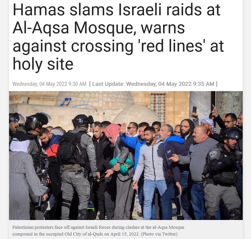 “Hamas slams Israeli raids at Al-Aqsa Mosque, warns against crossing 'red lines' at holy site”