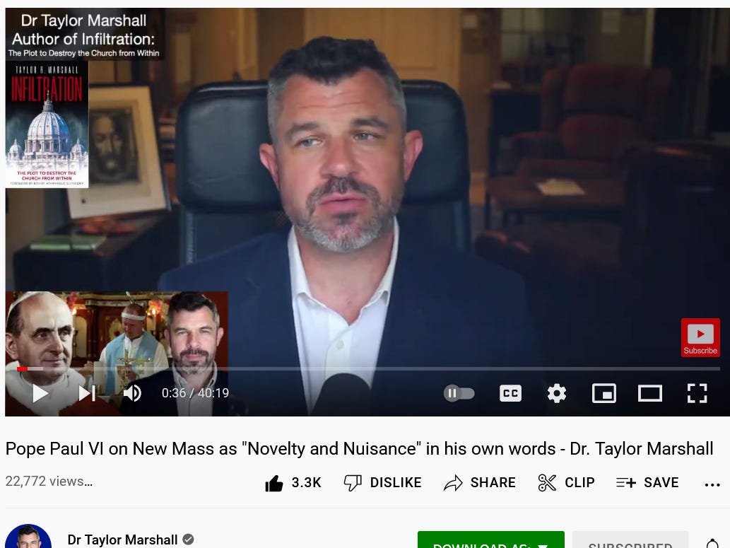 “Pope Paul VI on New Mass as "Novelty and Nuisance" in his own words - Dr. Taylor Marshall”