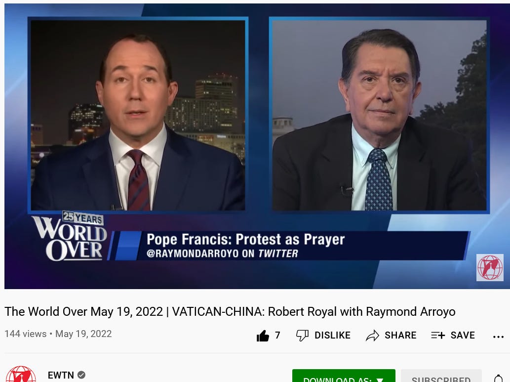 “The World Over May 19, 2022 | VATICAN-CHINA: Robert Royal with Raymond Arroyo”