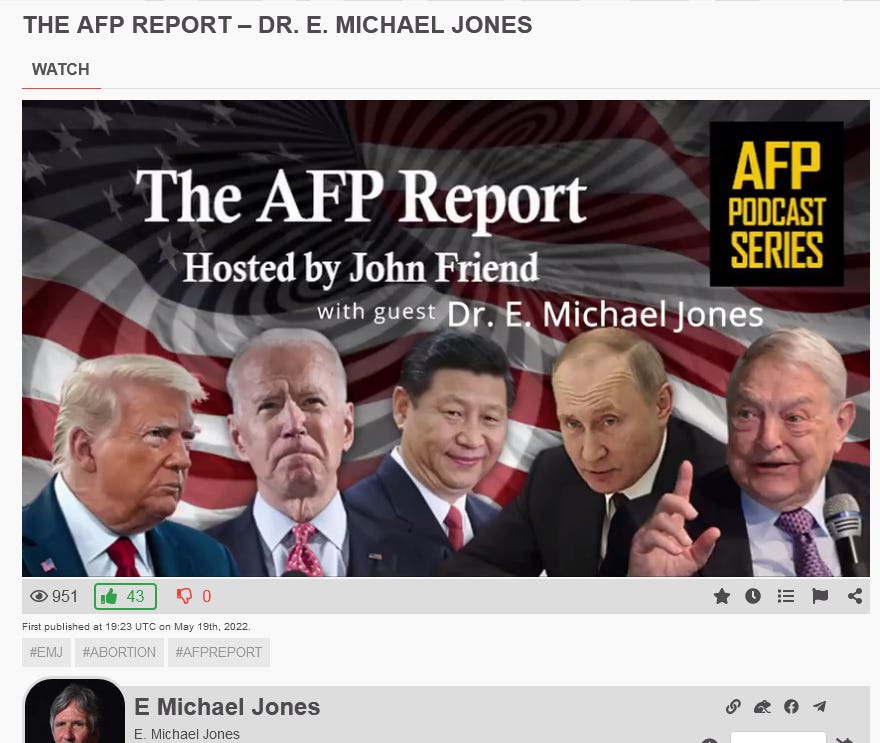 DropBox: https://www.dropbox.com/s/pjgx8pg2lxm71wb/The%20AFP%20Report%20%E2%80%93%20Dr.%20E.%20Michael%20Jones%20-%20J2Bchw9yf6O8.mp4