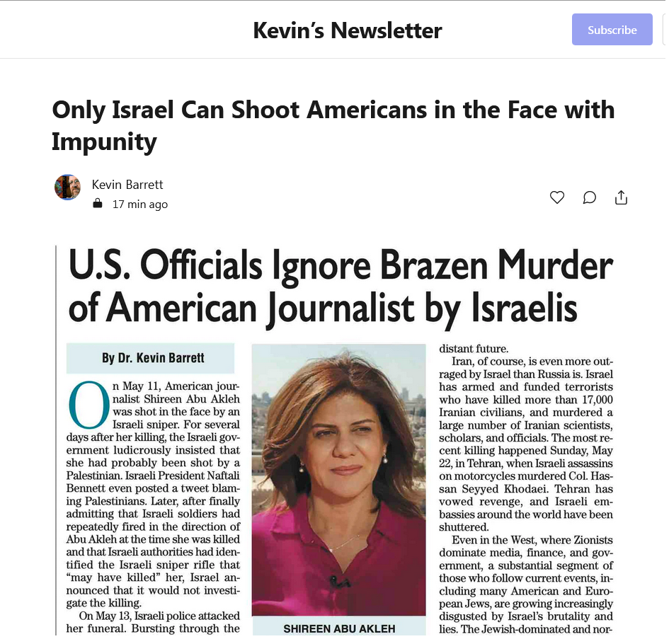 Our taxes to israel who shoot reporters – Americans – in the face and built two boarder walls with and ...