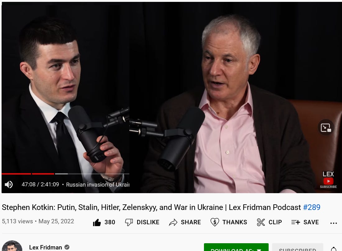 “Stephen Kotkin: Putin, Stalin, Hitler, Zelenskyy, and War in Ukraine | Lex Fridman Podcast #289”