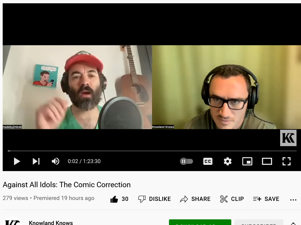 'Madebyjimbob discusses creating comedy against all idols - exploring scientism, Jordan Peterson, NASA, transhumanism and cyborgs.', ..