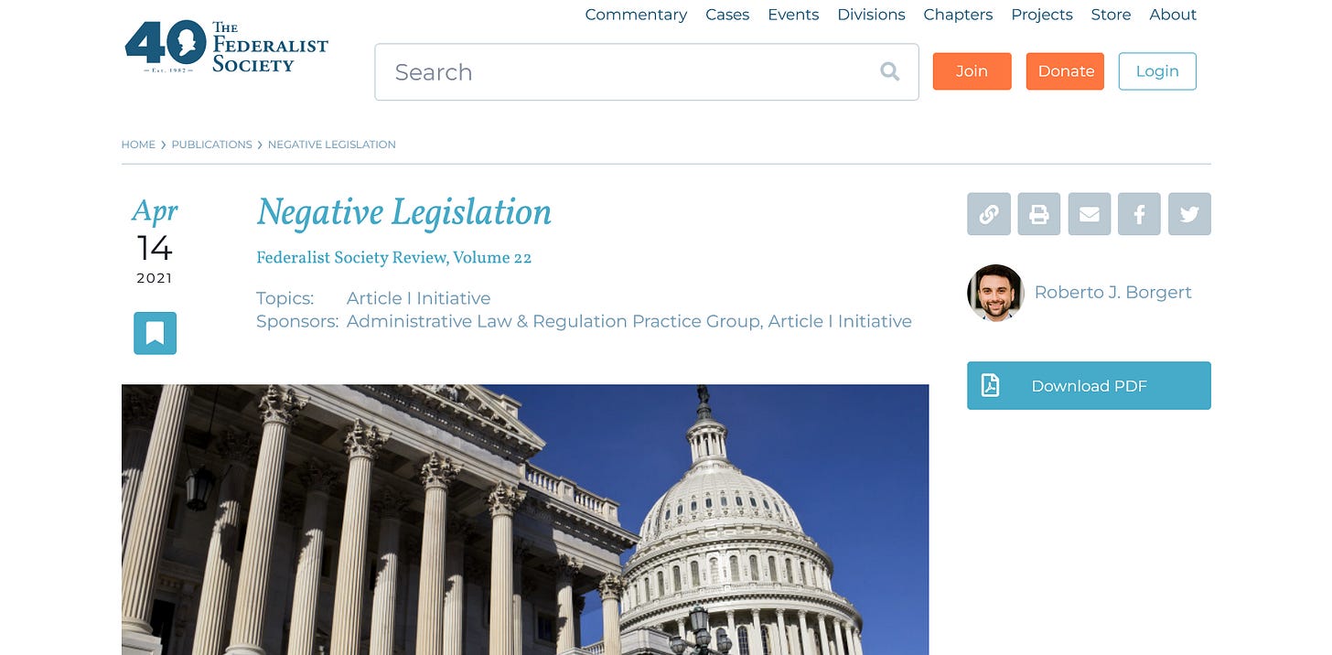 “Congress and What the Law is Not: Negative Legislation [2020 Article I Initiative Essay Contest]”