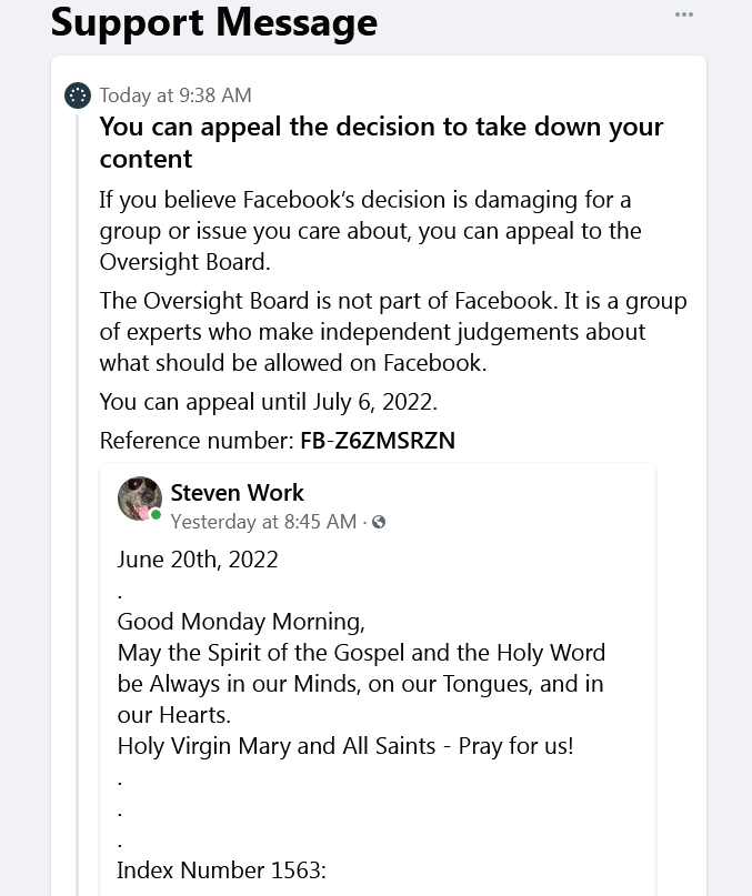 PDFs of the latest that have been collected (of many more) Facebook Censored Posts – listed by Index Number, in DropBox directory here, ..