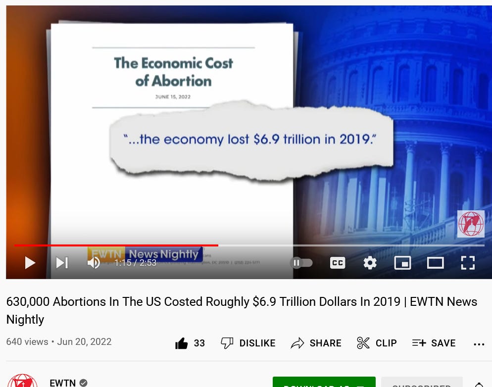 “630,000 Abortions In The US Costed Roughly $6.9 Trillion Dollars In 2019 | EWTN News Nightly”