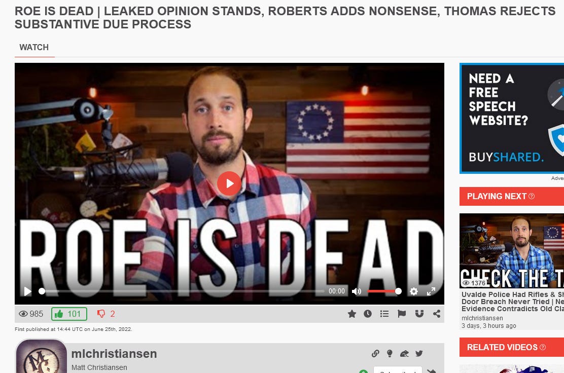 DropBox: https://www.dropbox.com/s/ophs4d8ua1al5re/Roe%20is%20Dead%20Leaked%20Opinion%20Stands%2C%20Roberts%20Adds%20Nonsense%2C%20Thomas%20Rejects%20Substantive%20Due%20Process.mp4