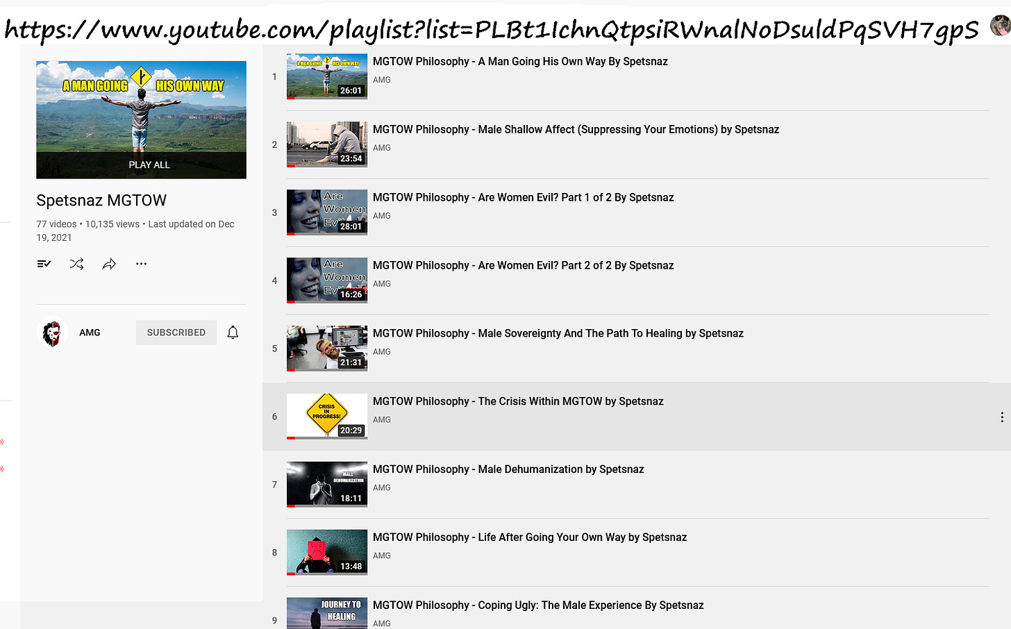 Spetznaz was a deeply touching content creator that left after creating a large number of impressively insightful videos about the male experience I had never come across so clear and raw. Not a single video he created that did not speak to – and revive - some part of me that had been dying in isolation to some large degree in this male-hating testicle crushing vile Witch-Matriarchy horror-filled life of mine and most males .. this putrid vile soul-twisting Joy-murdering Female-Evil Poisoned #CntHell.