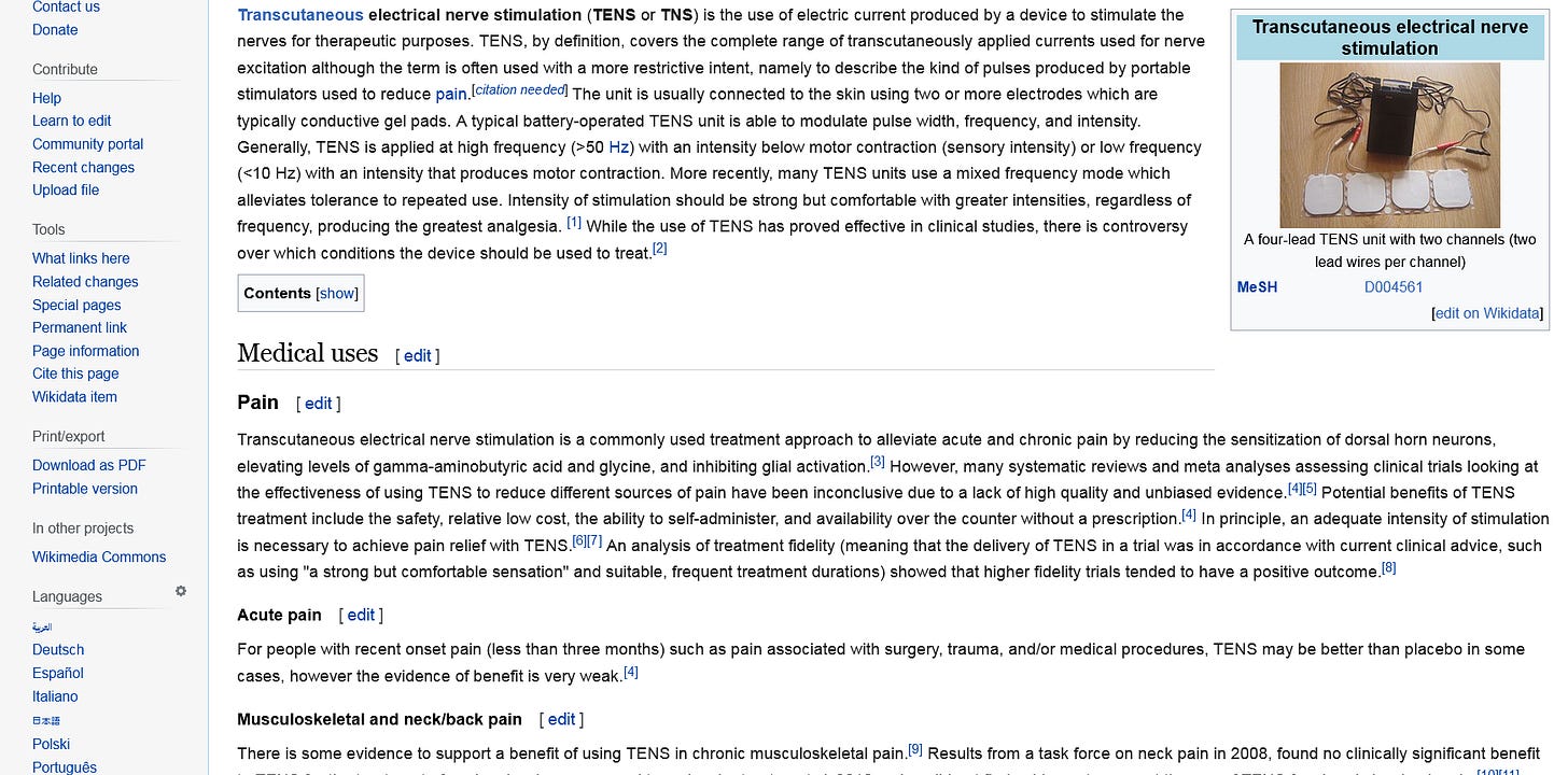 https://en.wikipedia.org/wiki/Transcutaneous_electrical_nerve_stimulation