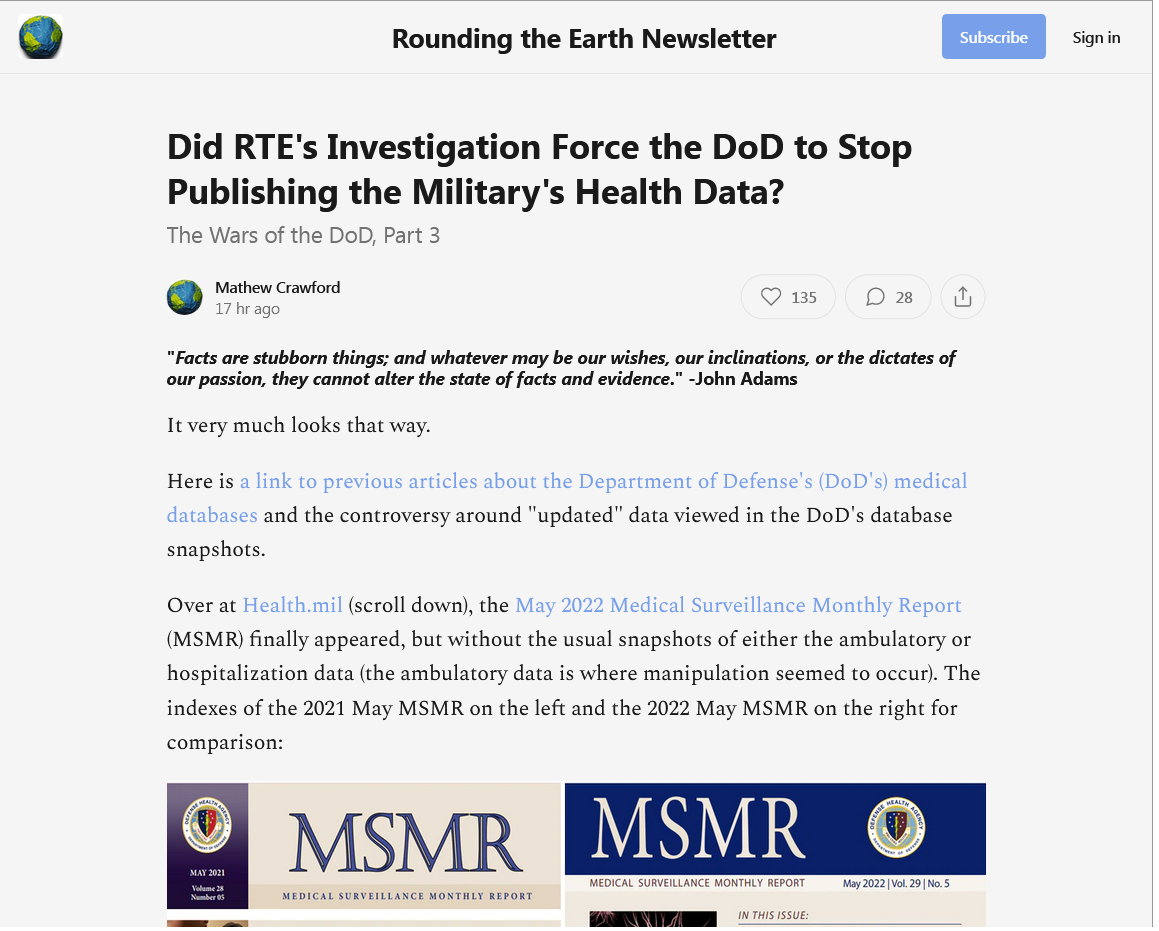 “Did RTE's Investigation Force the DoD to Stop Publishing the Military's Health Data?”