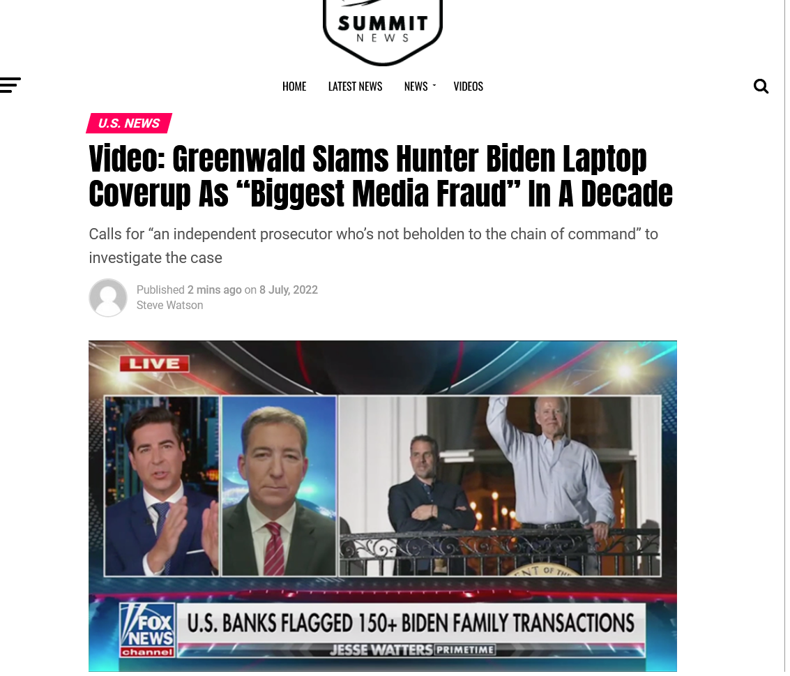 “Video: Greenwald Slams Hunter Biden Laptop Coverup As “Biggest Media Fraud” In A Decade”