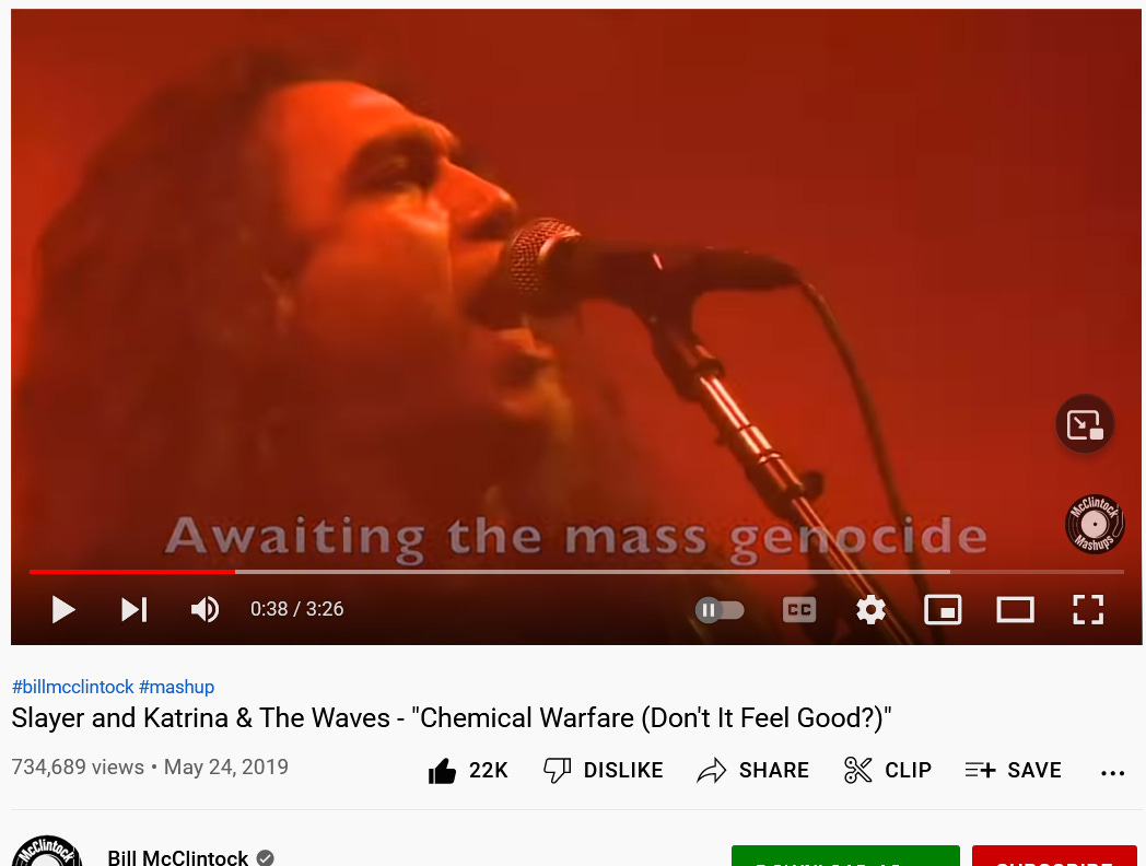 “Slayer and Katrina & The Waves - "Chemical Warfare (Don't It Feel Good?)"”