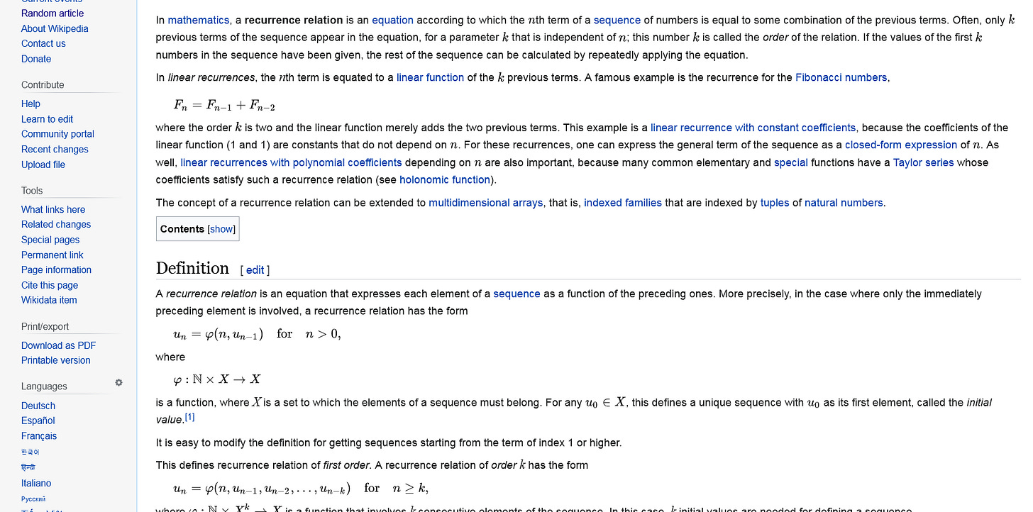 DropBox: https://www.dropbox.com/s/dyt67uoc69fxooe/Recurrence%20relation%20-%20Wikipedia.pdf