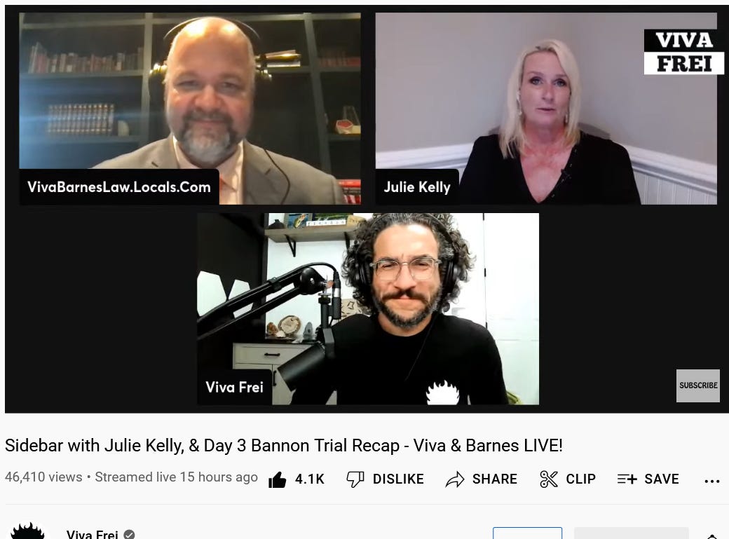 “Sidebar with Julie Kelly, & Day 3 Bannon Trial Recap - Viva & Barnes LIVE!”
