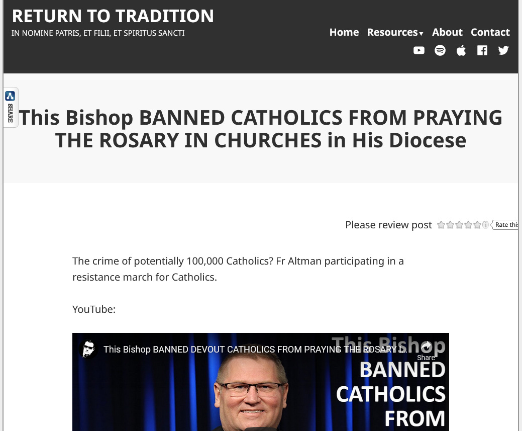 “This Bishop BANNED DEVOUT CATHOLICS FROM PRAYING THE ROSARY In Churches In His Diocese”