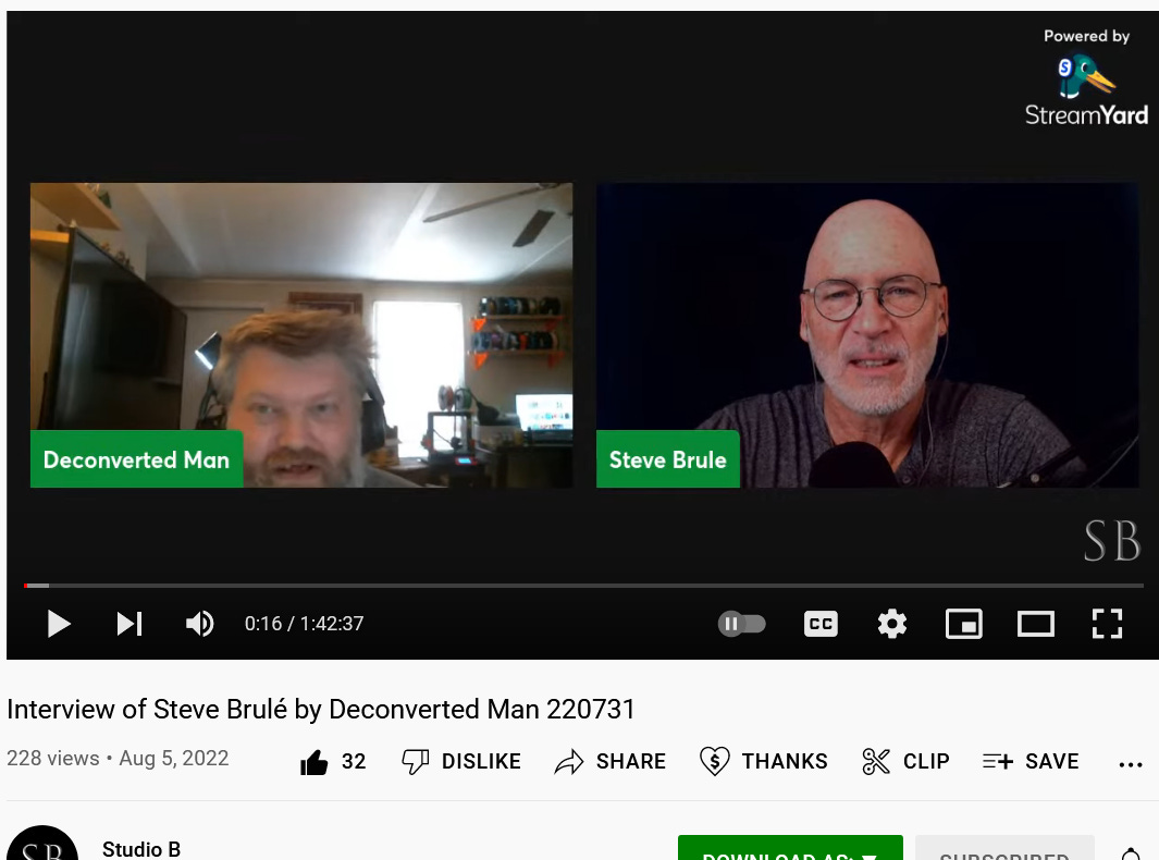 “Interview of Steve Brulé by Deconverted Man 220731”