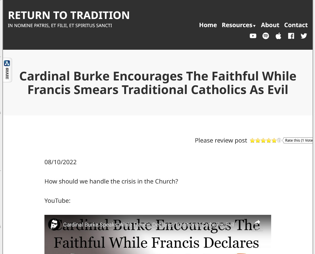 “Cardinal Burke Speaks While Francis Declares Traditional Catholics Evil”