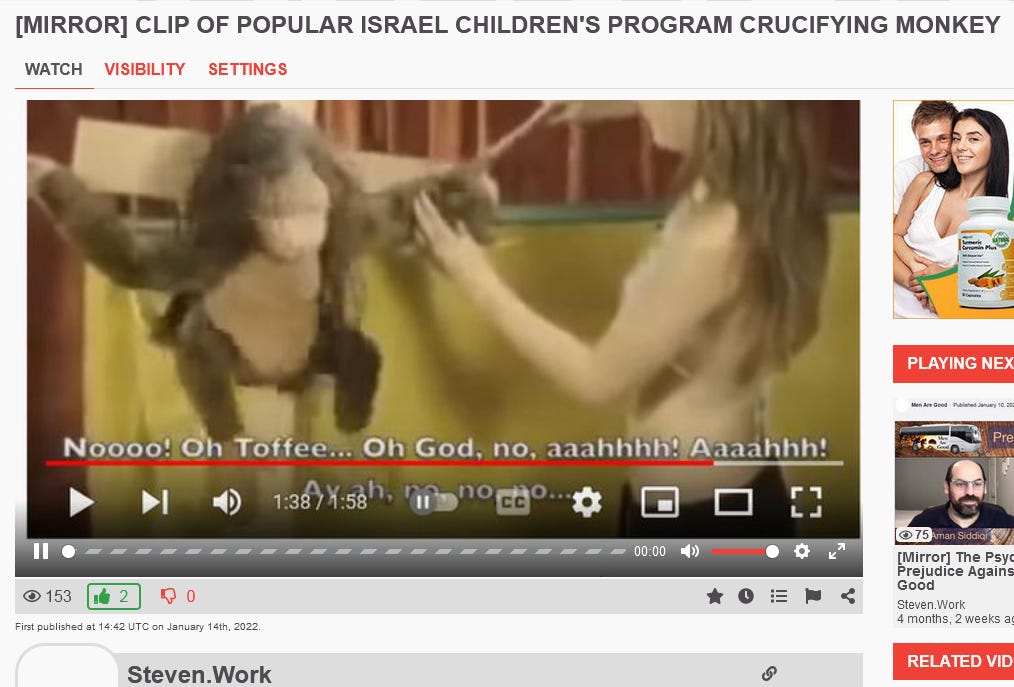“[Mirror] Clip of popular israel children's program crucifying monkey”