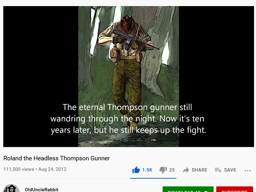 DropBox: https://www.dropbox.com/s/mr4h4ovbm9h0qj3/Roland%20the%20Headless%20Thompson%20Gunner.mp4