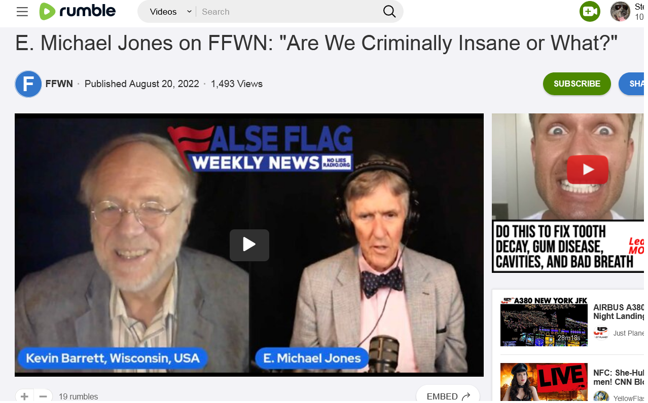 https://rumble.com/v1gperj-e.-michael-jones-on-ffwn-are-we-criminally-insane-or-what.html