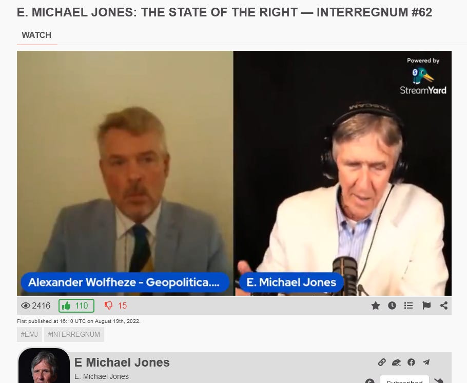 “E. Michael Jones: The State of the Right — Interregnum #62”