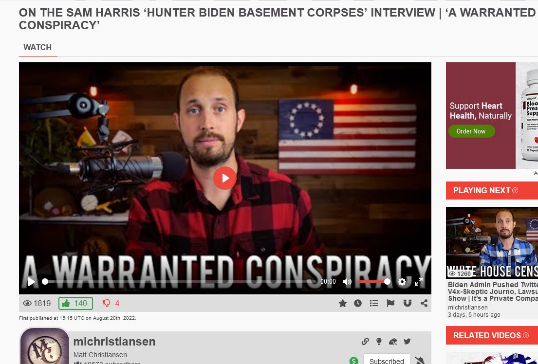 “On the Sam Harris ‘Hunter Biden Basement Corpses’ Interview | ‘A Warranted Conspiracy’”