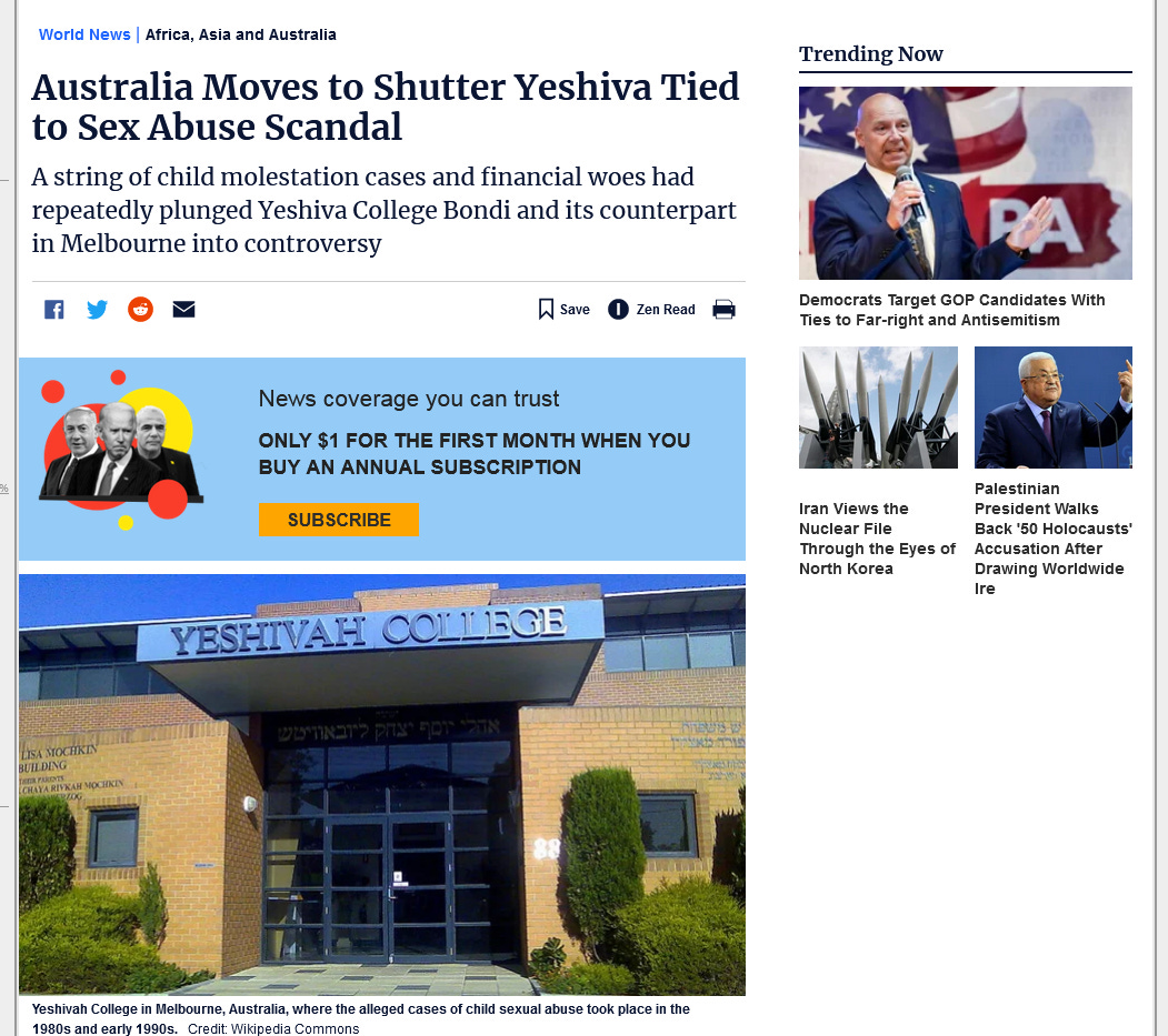 “Australia moves to shutter yeshiva tied to sex abuse scandal”