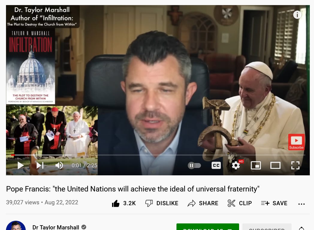 Okay, that was a small part of what I touched on this morning and given that the video below mentions the UN hyper-empowerment anti-Catholic push from our soul-murdering and Church destroying Pope, I though that was significant enough to write-on.