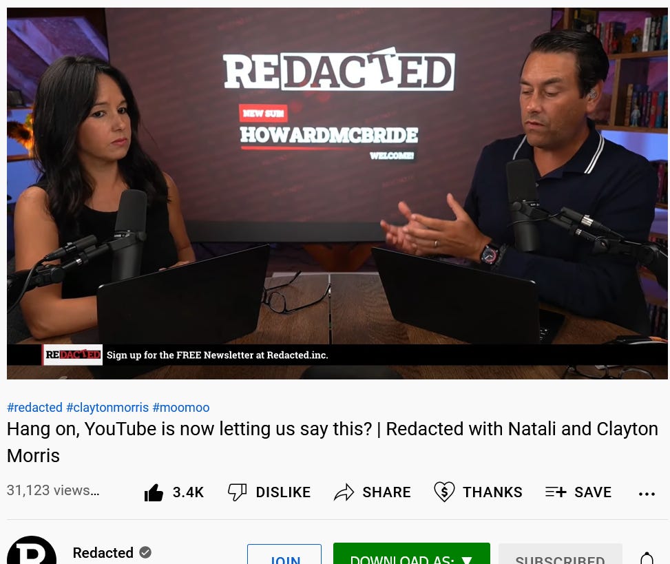 “Hang on, YouTube is now letting us say this? | Redacted with Natali and Clayton Morris”