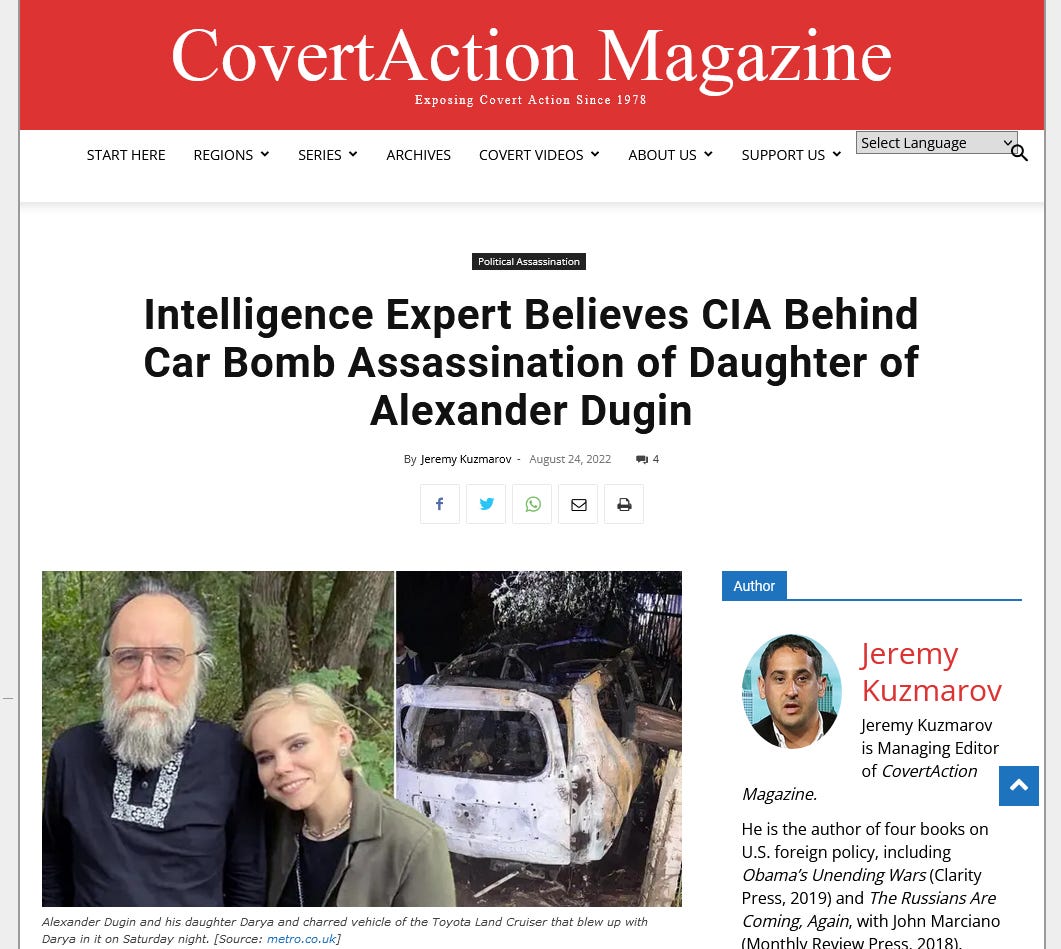 “Intelligence Expert Believes CIA Behind Car Bomb Assassination of Daughter of Alexander Dugin”