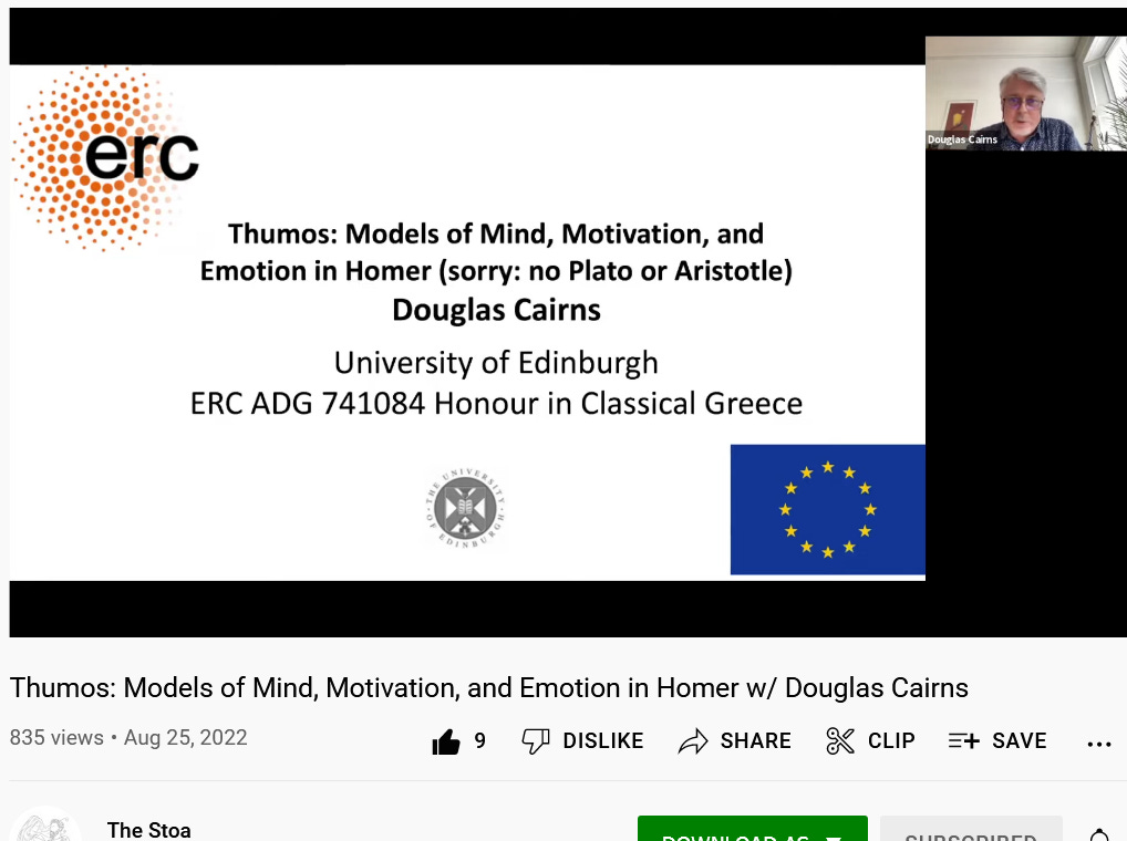 “Thumos: Models of Mind, Motivation, and Emotion in Homer w/ Douglas Cairns”