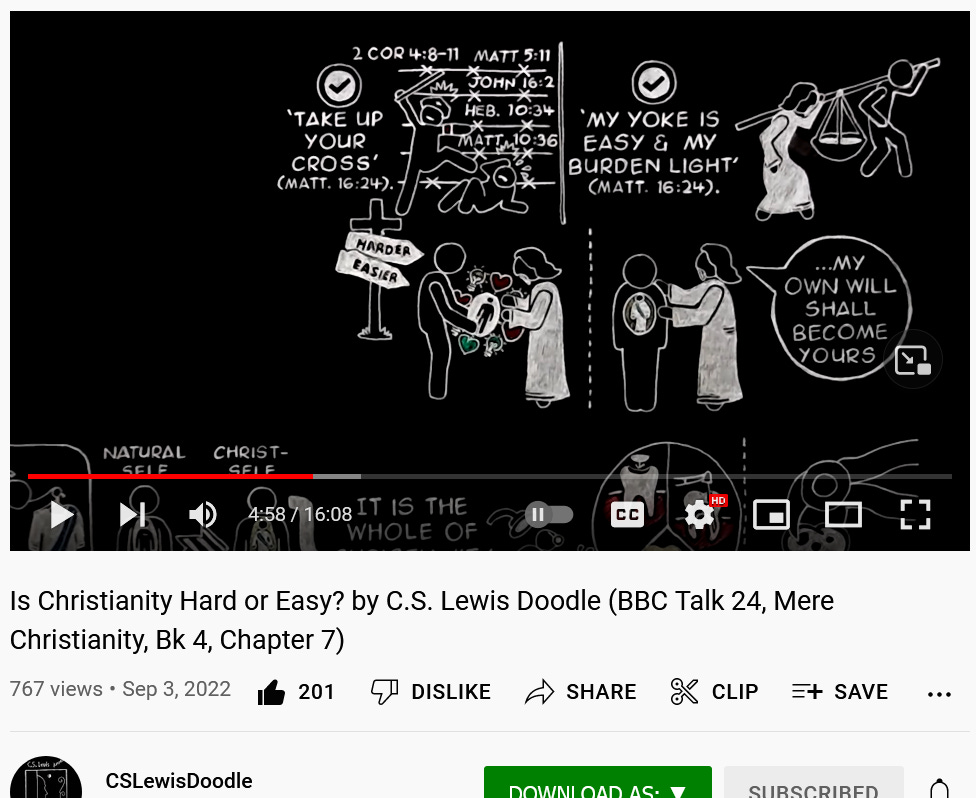 “Is Christianity Hard or Easy? by C.S. Lewis Doodle (BBC Talk 24, Mere Christianity, Bk 4, Chapter 7)”