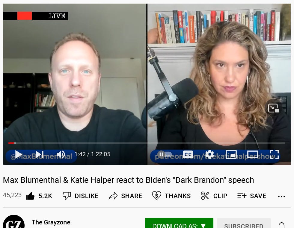 “Max Blumenthal & Katie Halper react to Biden's "Dark Brandon" speech”
