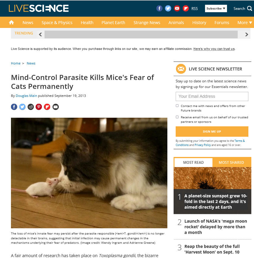 https://www.livescience.com/39772-parasite-makes-mice-unafraid.html,