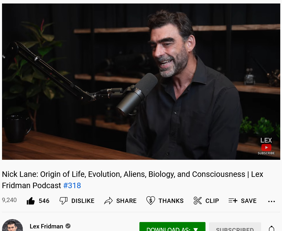 “Nick Lane: Origin of Life, Evolution, Aliens, Biology, and Consciousness | Lex Fridman Podcast #318”