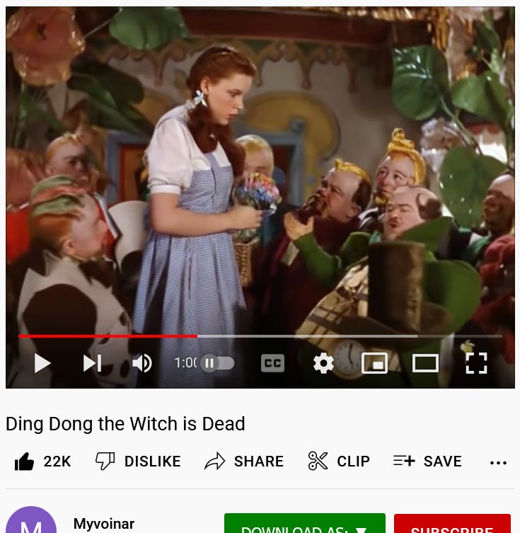 DropBox: https://www.dropbox.com/s/svel7g2e8z9s2lr/Ding%20Dong%20the%20Witch%20is%20Dead.mp4
