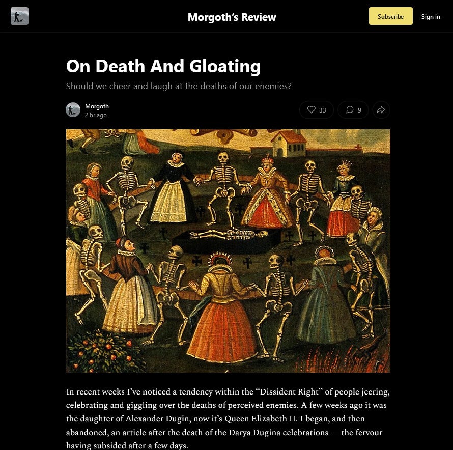 .. article - 'Should we cheer and laugh at the deaths of our enemies?'