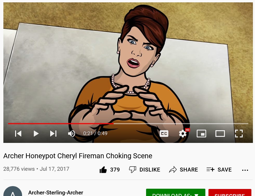 “Archer Honeypot Cheryl Fireman Choking Scene”