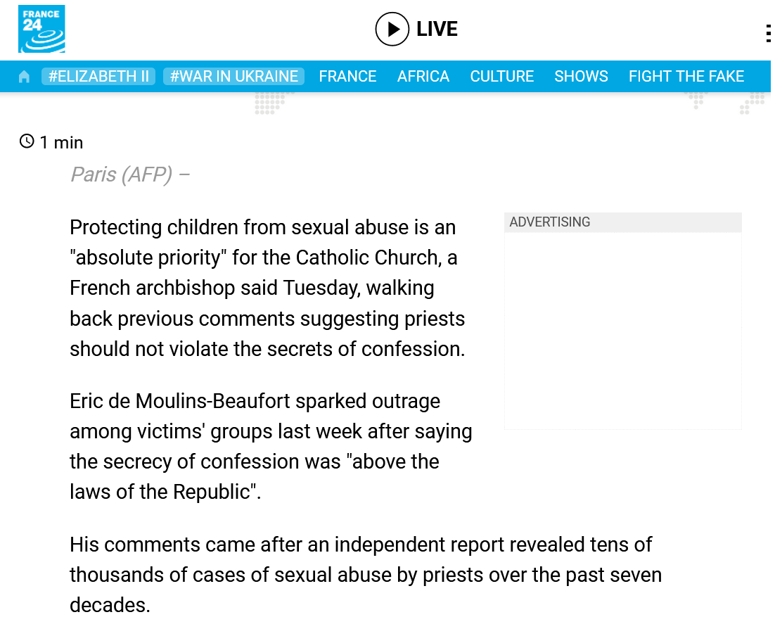 “French bishop says protecting minors 'absolute priority' after confession row”