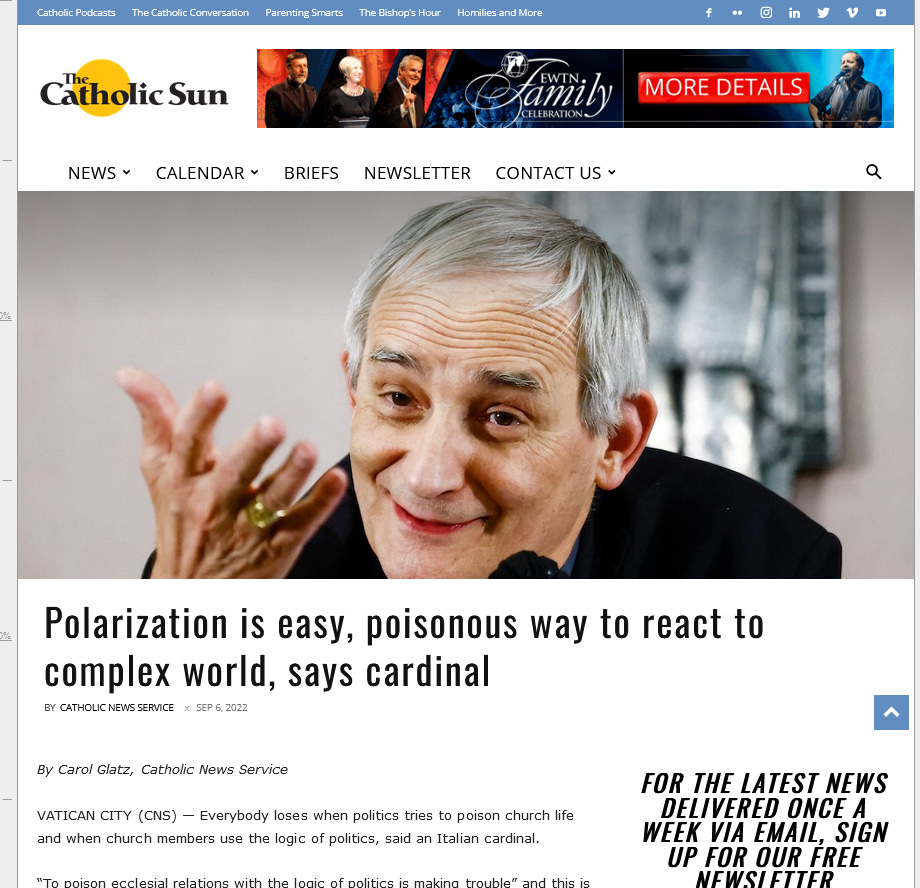 “Polarization is easy, poisonous way to react to complex world, says cardinal”