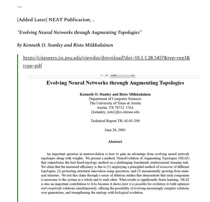 I realized after I went outside to pray and people-car watch that I had forgotten to include the NEAT paper I discussed – so I cut my time very short outside and came in and added it. I also 'Updated' the PDF versions of my posts in my Dropbox area and changed the URLs to reflect them .. I forgot to update the Archived version of SubStack which I might do later.