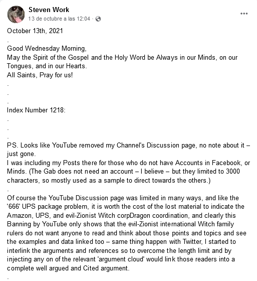https://www.facebook.com/Steven.Work/posts/pfbid0gNhwsU76Ay8AagnpJdA9JpnPLrJSqePm9Z4B1wqtwp1PFFieMibq1wrs8Gu8Rrg1l [Facebook’s disOrdering URL]